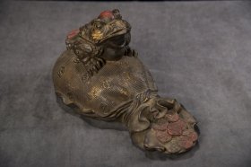 古玩铜器收藏,复古金蟾吐钱;招财进宝;古香古色,做工精湛!