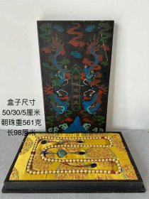 宫廷御用漆器收藏盒内珍藏舒俱来朝珠 朝珠尺寸:直径20毫米 漆器盒尺寸:长宽高25/15/10.5厘米