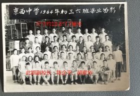 老照片【1964年,南京五中初三乙毕业班暨欢送钱京陵同学参加人民空军合影】照片尺寸:20.5×15cm