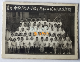 老照片:上海市育才中学,1963-1964年初三(6)班毕业合影。此期校长:段力佩(江苏金坛县人)。——校简史:前身1901年英籍犹太人埃丽斯.嘉道理在上海白克路(今凤阳路)创办育才书社。1910年迁山海关路和卡德路(今石门二路)交界处新校址,更名工部局立育才公学。1941年更名上海特别市立育才中学。1945年更名上海市立育才中学。1950年段力佩任校长。1953年被教育部列为上海市重点中学。~
