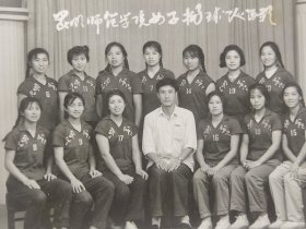 1964年9月开学张邦机与昆明师院女生合影照片(看样子应该是女排或者说是女篮的)(钱二新朋友同事等相册)