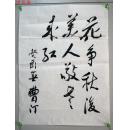 中国翻译界“三曹”之一、新中国翻译恩格斯军事著作奠基人、著名翻译家曹汀,1992年书“花争秋后美,人敬老来红”书法一幅 (尺寸70*35cm 约2.2平尺)