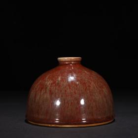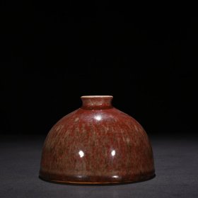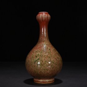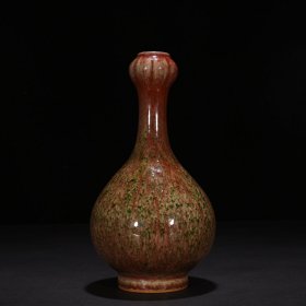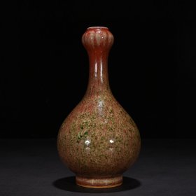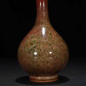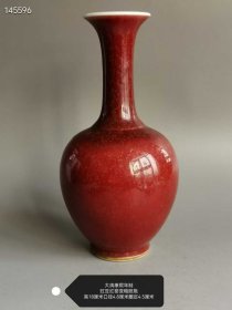 224_大清康熙年制的豇豆红窑变釉胆瓶,高18厘米,口径4.8厘米,圈足4.5厘米。瓶身线条优雅,如美人亭亭玉立,豇豆红釉色温润,窑变自然,尽显康熙朝瓷器的精湛工艺与独特韵味。