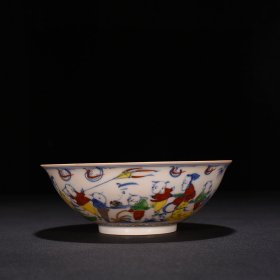 明成化红胎斗彩描金美人带子纹薄胎碗6*16.5厘米