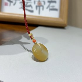 和田玉, 且末糖白·平安扣 哇塞真正的油膏料来啦 肉眼可见的油糯感 色泽交融 演绎自然之美 尺寸:21.4×7.1mm 搭配中国红编绳 上身瞬间 温婉的东方美人氛围感拉满 超有中式韵味 蜂蜜般的糖色 狠狠戳中我的审美