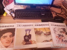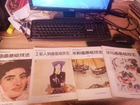 美术自学丛书【油画基础技法;工笔人物画基础技法; 水粉画基础技法;花鸟画基础技法】4本合售