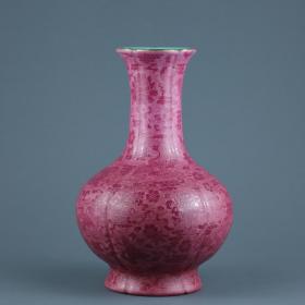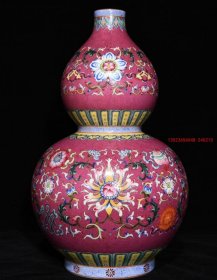 大清乾隆年制胭脂红粉彩八宝花卉纹葫芦瓶