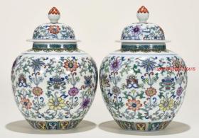 大清雍正年制斗彩花卉八宝纹盖罐1对