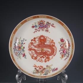 清光绪年间粉彩八宝龙纹外花卉赏盘