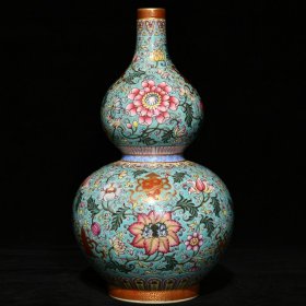 清乾隆 松石绿地粉彩八宝花卉纹葫芦瓶