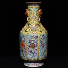 清雍正斗彩缠枝莲花卉八宝纹衔耳尊53.5x38厘米