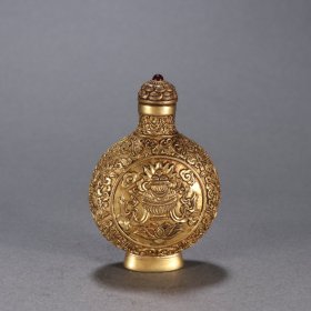清 铜鎏金缠枝花卉八宝纹鼻烟壶