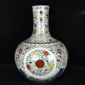 清雍正斗彩海石八宝花卉纹大天球瓶 52.5x38厘米