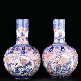 清乾隆青花釉里红花卉八宝纹天球瓶规格44*26厘米