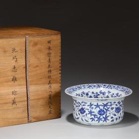 旧藏 明 永乐青花缠枝花卉八宝纹折沿大盆 尺寸:高14.3公分 直径32.5公分
