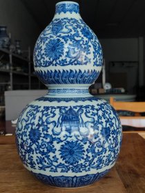 全美品官窑大清乾隆年制青花缠枝莲八宝花卉葫芦瓶,尺寸31/19