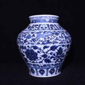 全美品顶级青花瓷八宝瑞兽缠枝莲花卉罐,尺寸35.5/36,