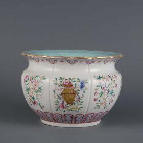 清道光年制粉彩花卉八宝纹瓜菱水洗 尺寸:高度12㎝口径17.6㎝