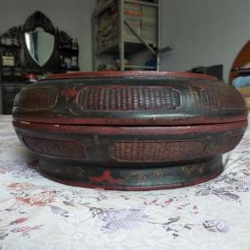清代描金开窗八宝花卉纹寿字大漆盒