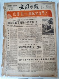 1960年5月1日 安徽日报 隆重庆祝“五一”国际劳动节 全省职工以实际行动庆祝“五一”(品差)