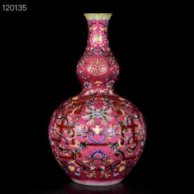 清乾隆勾花珐琅彩花卉如意纹葫芦瓶;