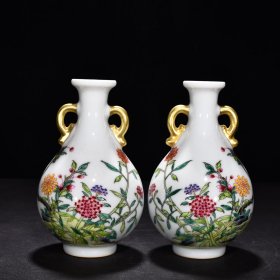 清雍正珐琅彩花卉纹如意耳瓶 高16.5厘米 宽9厘米