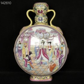 清乾隆粉彩人物故事纹如意耳扁瓶,