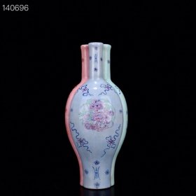 清雍正斗彩缠枝花卉纹如意蒜头瓶 24*18厘米