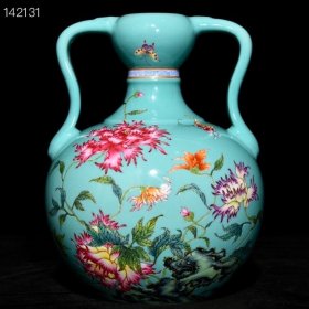 清雍正斗彩花卉纹如意耳蒜头瓶2 24*18厘米