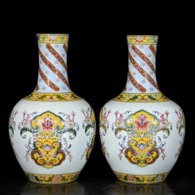 清雍正珐琅彩花卉如意纹天球瓶一对
