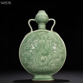 清乾隆豆青釉刻龙纹如意耳葫芦扁瓶