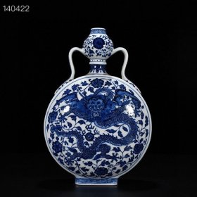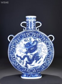 清乾隆青花如意开光龙纹四系扁瓶!