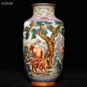 清乾隆郎世宁绘珐琅彩羊羊如意鱼尾瓶 高23.5厘米 宽11厘米