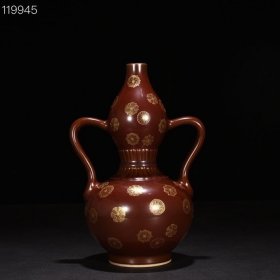 清乾隆紫金釉描金皮球花纹如意耳葫芦瓶