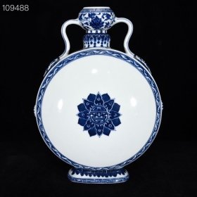 清乾隆青花寿字纹如意耳扁瓶,