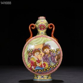 清乾隆黄地珐琅彩西洋人物纹如意耳葫芦扁瓶