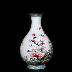 旧藏 清雍正珐琅彩蝶恋花纹如意耳蒜头瓶 高23.5厘米 宽16.5厘米