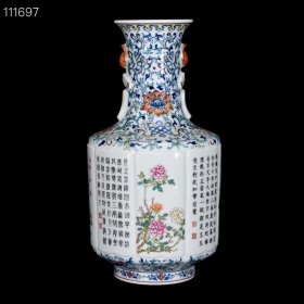 清乾隆斗彩花卉题字纹如意耳扁瓶,27×25×13