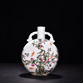 清雍正珐琅彩福寿如意扁瓶 高27.5厘米 宽20.5厘米