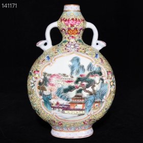 清乾隆黄地珐琅彩描金人物故事纹如意耳扁瓶 规格40厘米X30厘米X15厘米