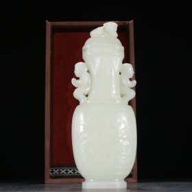 清代 和田玉雕吉祥如意赏瓶