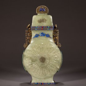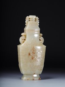 清 和田玉兽面纹如意耳瓶、
