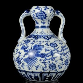青花凤纹如意瓶。高22.5*17