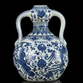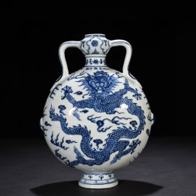 明宣德青花龙纹如意耳扁瓶