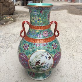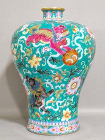 清代雍正绿地事事如意梅瓶