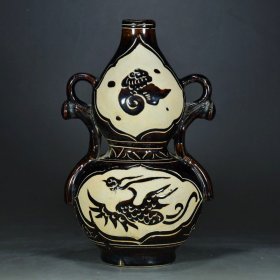 宋 磁州窑凤纹如意葫芦瓶1