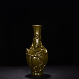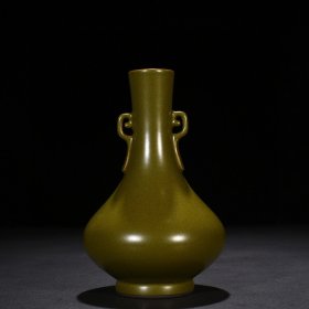 明黄釉龙纹象耳如意瓶