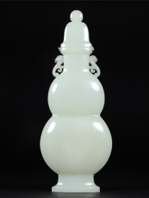 清代和田白玉双如意耳葫芦瓶