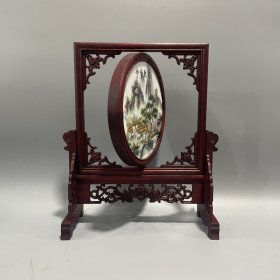 花梨木镶嵌瓷板雪景图插屏 屏风 尺寸30/10/27厘米