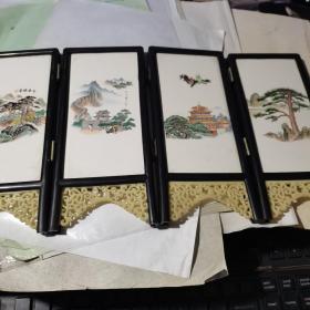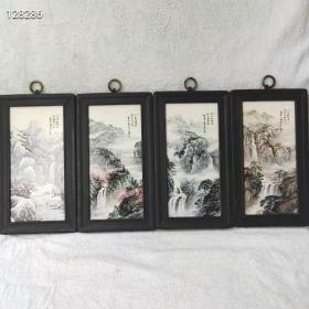 瓷板画屏风山水挂件一套4块